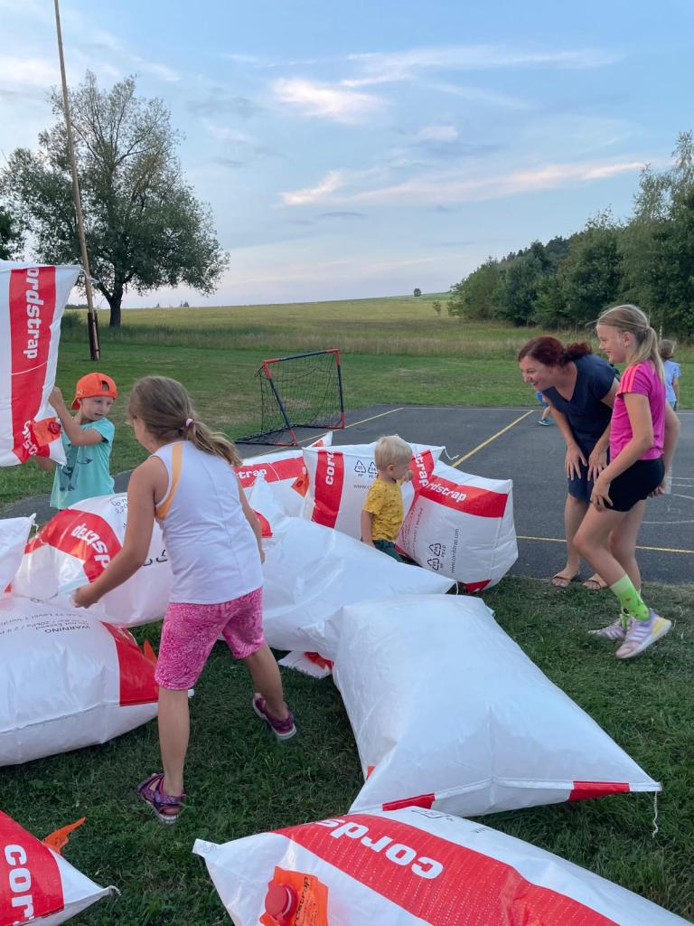- na dětském hřišti ve Březí